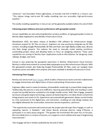 Cesium capabili�es are also enhancing Bentley’s product por�olio, bringing geospa�al context to