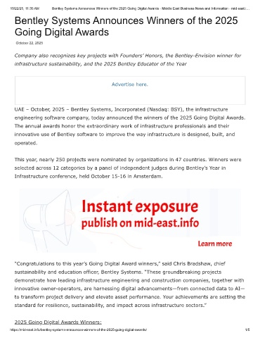 10/22/25, 11:35 AM Bentley Systems Announces Winners of the 2025 Going Digital Awards - Middle East Business News and Information - mid-east.i…