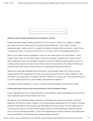 10/17/25, 1:15 PM Bentley Systems Bolsters Cesium with Reality Modeling Capabilities, Brings Geospatial Context to Infrastructure Engineering - Mi…