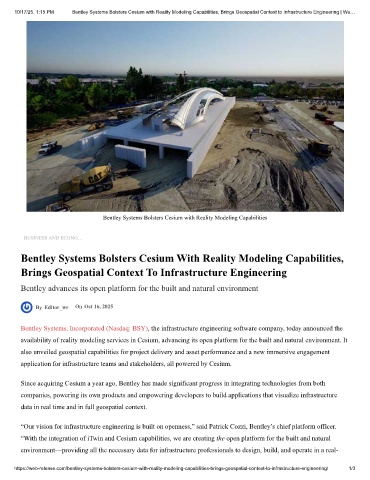 10/17/25, 1:15 PM Bentley Systems Bolsters Cesium with Reality Modeling Capabilities, Brings Geospatial Context to Infrastructure Engineering | We…