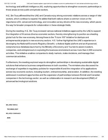 10/17/25, 9:34 AM UAE and Canada explore opportunities to enhance economic partnerships in AI and advanced technology sectors