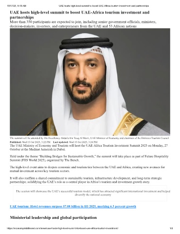 10/17/25, 8:19 AM UAE hosts high-level summit to boost UAE-Africa tourism investment and partnerships