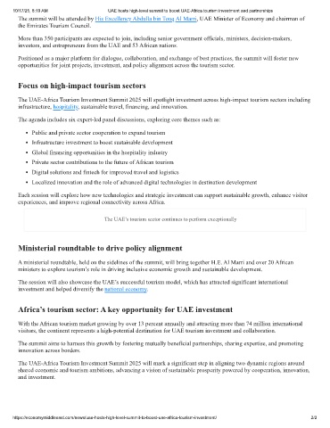 10/17/25, 8:19 AM UAE hosts high-level summit to boost UAE-Africa tourism investment and partnerships