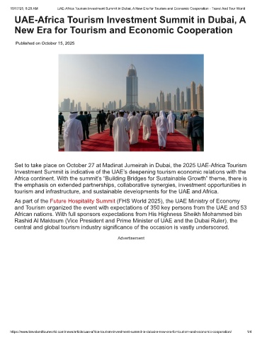 10/17/25, 8:20 AM UAE-Africa Tourism Investment Summit in Dubai, A New Era for Tourism and Economic Cooperation - Travel And Tour World