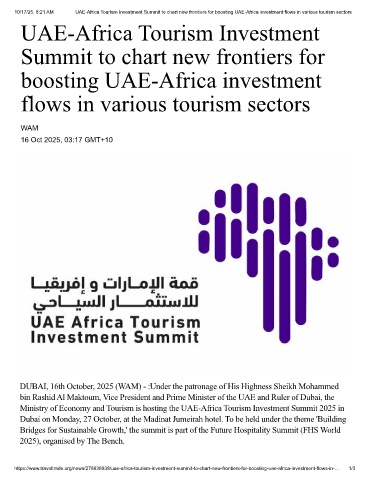 10/17/25, 8:21 AM UAE-Africa Tourism Investment Summit to chart new frontiers for boosting UAE-Africa investment flows in various tourism sectors