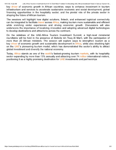 10/17/25, 8:22 AM UAE-Africa Tourism Investment Summit To Chart New Frontiers For Boosting UAE-Africa Investment Flows In Various Tourism Se…