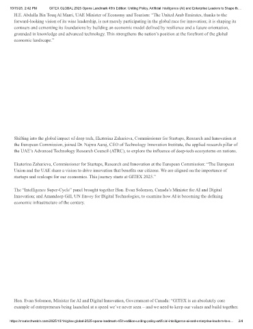 Hon. Evan Solomon, Minister for AI and Digital Innovation, Government of Canada: “GITEX is an absolutely core
