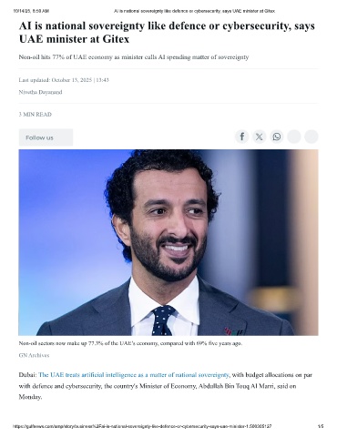 10/14/25, 8:50 AM AI is national sovereignty like defence or cybersecurity, says UAE minister at Gitex