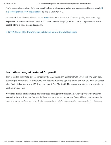 10/14/25, 8:50 AM AI is national sovereignty like defence or cybersecurity, says UAE minister at Gitex