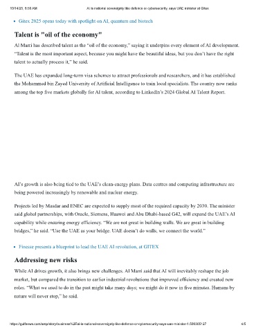 10/14/25, 8:50 AM AI is national sovereignty like defence or cybersecurity, says UAE minister at Gitex