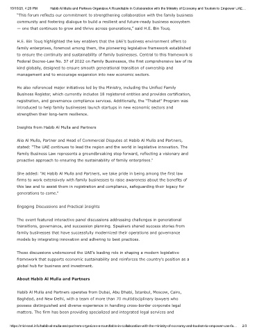 10/10/25, 4:20 PM Habib Al Mulla and Partners Organizes A Roundtable in Collaboration with the Ministry of Economy and Tourism to Empower UAE…