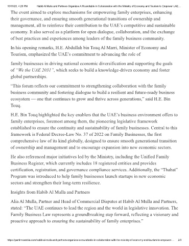 10/10/25, 4:20 PM Habib Al Mulla and Partners Organizes A Roundtable in Collaboration with the Ministry of Economy and Tourism to Empower UAE…