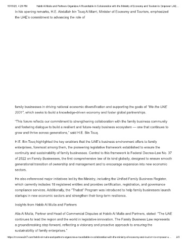10/10/25, 4:20 PM Habib Al Mulla and Partners Organizes A Roundtable in Collaboration with the Ministry of Economy and Tourism to Empower UAE…