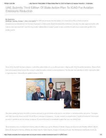 10/9/25, 8:20 AM UAE Submits Third Edition Of State Action Plan To ICAO For Aviation Emissions Reduction - OneArabia
