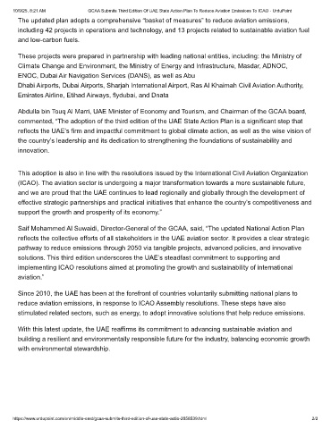 10/9/25, 8:21 AM GCAA Submits Third Edition Of UAE State Action Plan To Reduce Aviation Emissions To ICAO - UrduPoint