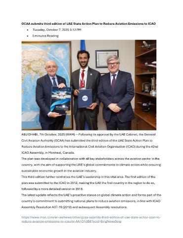 Civil Aviation Authority (GCAA) has submitted the third edition of the UAE State Action Plan to