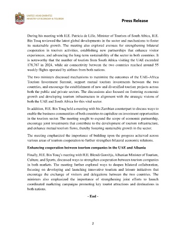 is noteworthy that the number of tourists from South Africa visiting the UAE exceeded