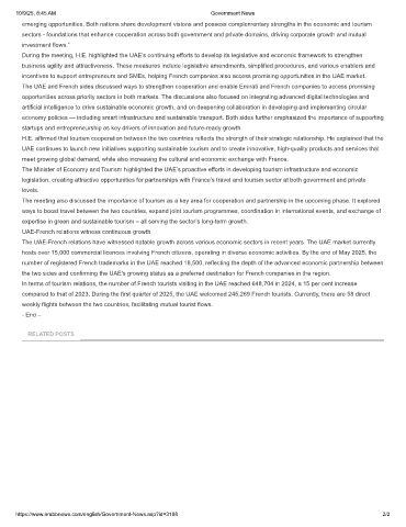 the two sides and confirming the UAE's growing status as a preferred destination for French companies in the region.