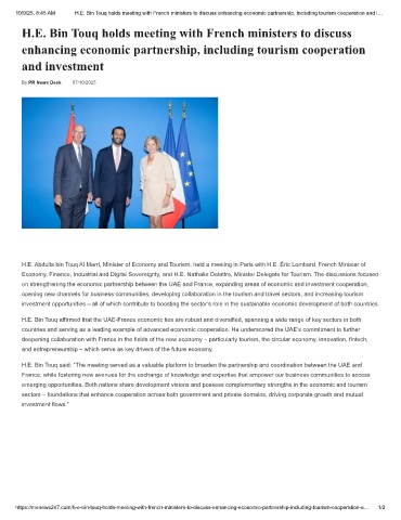 https://menews247.com/h-e-bin-touq-holds-meeting-with-french-ministers-to-discuss-enhancing-economic-partnership-including-tourism-cooperation-a… 1/2