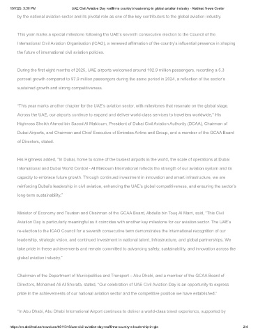 10/7/25, 3:36 PM UAE Civil Aviation Day reaffirms country’s leadership in global aviation industry - Aletihad News Center
