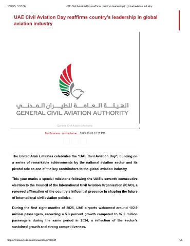 10/7/25, 3:37 PM UAE Civil Aviation Day reaffirms country’s leadership in global aviation industry