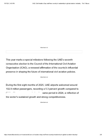 10/7/25, 3:43 PM UAE Civil Aviation Day reaffirms country's leadership in global aviation industry - The Tribune