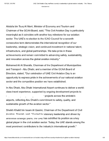 10/7/25, 3:43 PM UAE Civil Aviation Day reaffirms country's leadership in global aviation industry - The Tribune