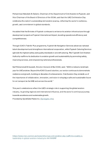 Mohammed Abdullah Al-Salami, Chairman of the Department of Civil Aviation in Fujairah, and