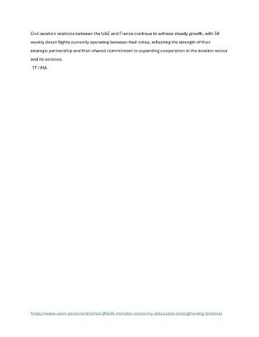 Civil aviation relations between the UAE and France continue to witness steady growth, with 58