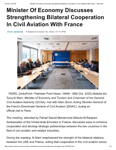 10/7/25, 4:05 PM Minister Of Economy Discusses Strengthening Bilateral Cooperation In Civil Aviation With France - UrduPoint