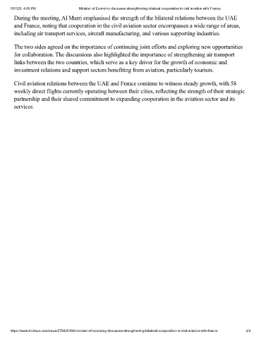 10/7/25, 4:05 PM Minister of Economy discusses strengthening bilateral cooperation in civil aviation with France