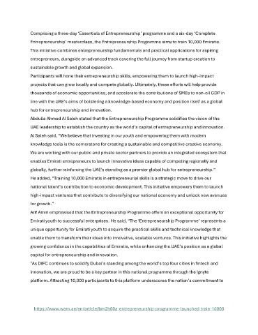 Entrepreneurship’ masterclass, the Entrepreneurship Programme aims to train 10,000 Emiratis.
