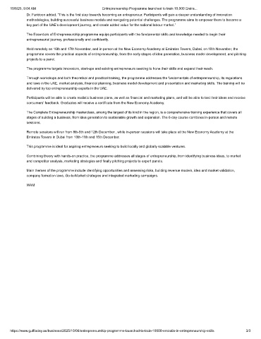 10/8/25, 9:04 AM Entrepreneurship Programme launched to train 10,000 Emira...