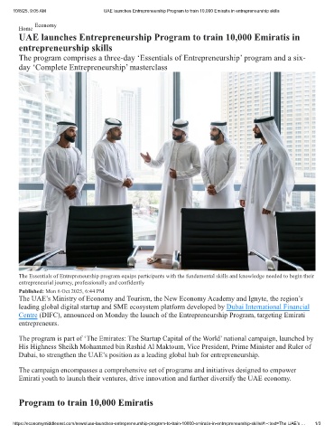 10/8/25, 9:05 AM UAE launches Entrepreneurship Program to train 10,000 Emiratis in entrepreneurship skills