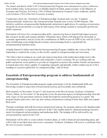 10/8/25, 9:05 AM UAE launches Entrepreneurship Program to train 10,000 Emiratis in entrepreneurship skills