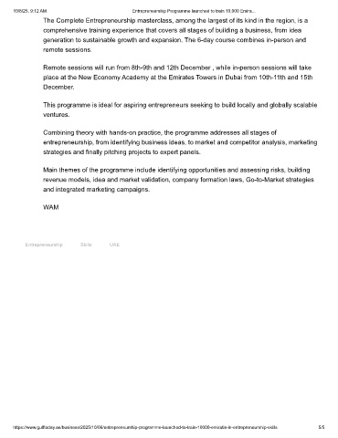 10/8/25, 9:12 AM Entrepreneurship Programme launched to train 10,000 Emira...