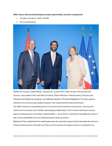PARIS, 5th October, 2025 (WAM) – Abdulla bin Touq Al Marri, UAE Minister of Economy and