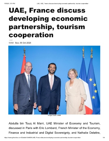 10/9/25, 3:31 PM UAE: UAE, France discuss developing economic partnership, tourism cooperation