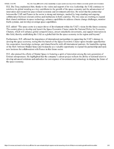10/9/25, 3:55 PM H.E. Bin Touq affirms the UAE’s leadership in space sector as a key driver of future economic growth and innovation