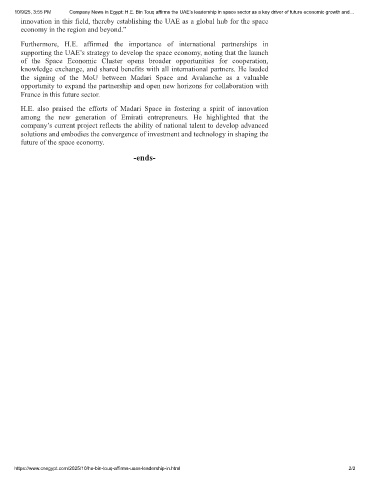 10/9/25, 3:55 PM Company News in Egypt: H.E. Bin Touq affirms the UAE’s leadership in space sector as a key driver of future economic growth and…