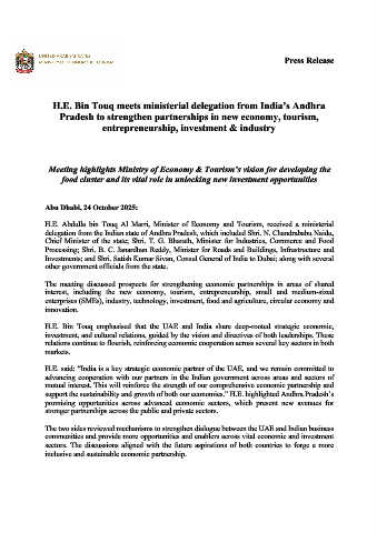 H.E. Bin Touq meets ministerial delegation from India’s Andhra