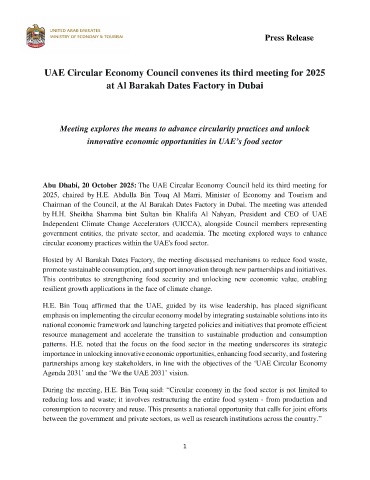 Abu Dhabi, 20 October 2025: The UAE Circular Economy Council held its third meeting for