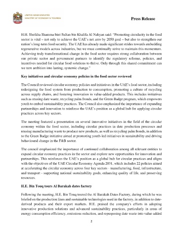 The Council reviewed circular economy policies and initiatives in the UAE’s food sector, including