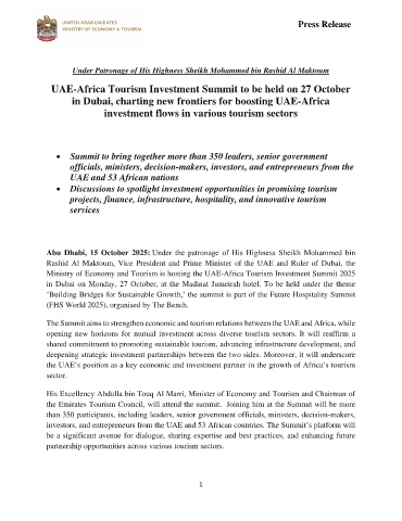 Ministry of Economy and Tourism is hosting the UAE-Africa Tourism Investment Summit 2025