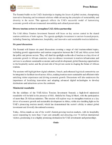 The UAE-Africa Tourism Investment Summit will focus on key sectors central to the shared