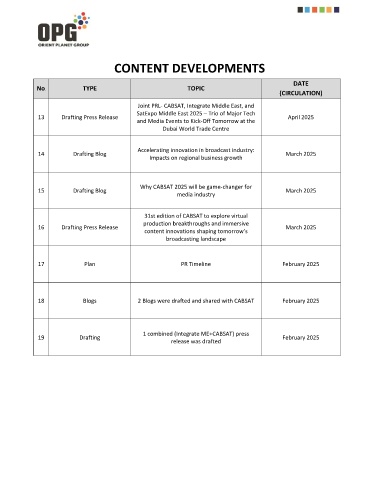 18             Blogs             2 Blogs were drafted and shared with CABSAT    February 2025