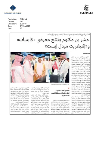 Publication: Al Etihad Country: UAE Circulation: 109,640 Date: 14 May 2025 Page: 19