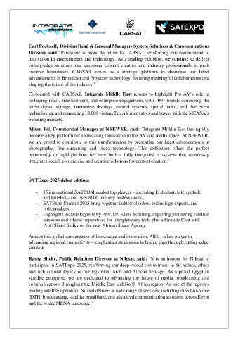 Division, said "Panasonic is proud to return to CABSAT, reinforcing our commitment to