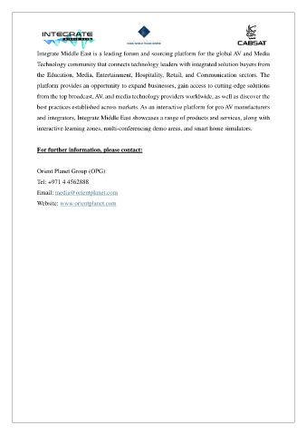 Integrate Middle East is a leading forum and sourcing platform for the global AV and Media