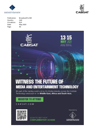 Publication: BroadcastPro ME Country: UAE Circulation: N/A Date: May 2025 Page: 40
